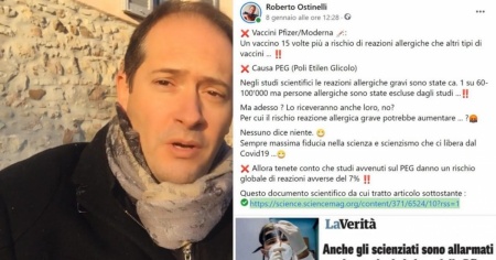 «Non è bene informato» – «Io non penso che Ostinelli sia in cattiva fede – sostiene Alessandro Diana, vaccinologo e infettivologo –. Ritengo sia anche un bravo medico. Semplicemente sugli aspetti legati al Covid-19 e al vaccino non è bene informato. Avere dei dubbi è legittimo. Divulgare informazioni false però è diverso».