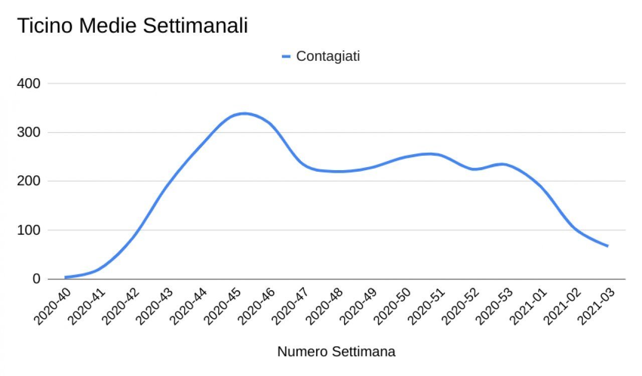 Incidenza in picchiata - Tornando alle cifre, quelle relative ai tamponi positivi hanno registrato un calo nelle ultime settimane. Sui 834 test effettuati il 22 gennaio il tasso di positività raggiungeva il 7% (una settimana prima era ancora del 13%). L'incidenza della malattia negli ultimi 14 giorni nel nostro cantone è di 317 persone positive su centomila abitanti, mentre il tasso di riproduzione Rt è dello 0.73 (dato al 11 gennaio).