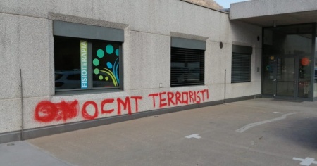 MEZZOVICO - "Terroristi". È la scritta comparsa questa mattina sulla parete della sede di Mezzovico dell'Ordine dei medici del Cantone Ticino. Un insulto in rosso, in cui la sigla è stata pure scritta in modo sbagliato (OCMT anziché OMCT), nonostante un tentativo di scritta precedentemente cancellata con lo spray.