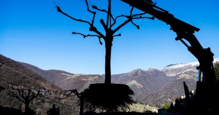 Nell'ambito della valorizzazione della piazza di Cabbio è iniziato lo spostamento di tigli e platani