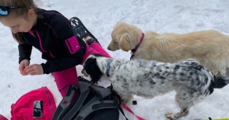 Due sagome nella neve – Michelle fa scattare ogni genere di allarme. Fa appelli sui social, in radio. Ovunque. Invano. Fino alla giornata di venerdì. A quel punto, un escursionista di Corzoneso, che sta facendo "pelli di foca" nella zona del Motto Crostel, scorge due sagome nella neve. Inizialmente pensa a due lupi. Poi, avvicinandosi e vedendo che si tratta di due cani, si ricorda di quell'appello visto qualche giorno prima sui social e recupera così il numero di telefono della persona che lo aveva lanciato.