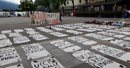 In Piazza Manzoni a Lugano è stato allestito un cimitero delle vittime della crisi climatica, con lo scopo di sottolineare che ogni anno si contano più di 250'000 morti.