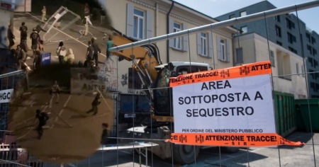 L'area interessata dalla demolizione, limitatamente alle macerie, è stata posta sotto sequestro per esigenze istruttorie. Si segnala a tal riferimento che nel corso della notte alcune decine di persone si sono introdotte nel sedime superando le transenne e rompendo i sigilli. Due di queste sono state in seguito identificate dalla Polizia cantonale e arrestate. La loro posizione è attualmente al vaglio. Sono in corso verifiche anche su altre persone identificate.