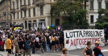 «Il Molino non si tocca» - Davanti al lungolago risuonano tamburi, e centinaia di giovani e meno giovani si mescolano nella protesta, che mantiene una forma pacifica. Si sente parlare anche in francese e in tedesco, il ritmo degli strumenti diventa sempre più incalzante mentre i manifesti si moltiplicano: «Quando l’ingiustizia diventa legge la resistenza diventa dovere», «Il Molino non si tocca». «Contro ogni repressione libertà e autogestione». Tantissime le persone venute ad assistere al corteo, che osservano e scambiano opinioni.
