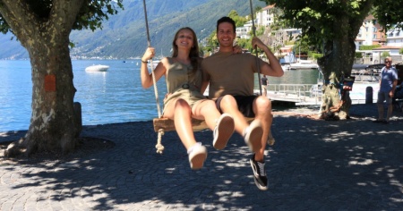 Il primo esperimento in Verzasca – Elena e Fabio sono due ragazzi davvero semplici. Li incontriamo sul lungolago di Ascona, dove è stata piazzata una delle loro altalene. «L'idea è nata un po' per caso – racconta Elisa –. Fabio da piccolo aveva un'altalena in giardino. Abbiamo iniziato a costruirne una. Poi col tempo abbiamo pensato di metterla in un posto un po' particolare. Il primo esperimento l'abbiamo fatto a Sonogno. A Rasa, invece, abbiamo piazzato la prima altalena ufficiale. E da lì è partito tutto».