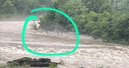 AVEGNO - Sui social la foto sta scatenando un'ondata d'indignazione. E, col suo cerchietto verde "rudimentale", è ormai diventata virale nel giro di poche ore. L'immagine, scattata da un passante in questo piovoso (per usare un eufemismo) martedì mattina, ritrae un gruppo di persone mentre fa il bagno presso la spiaggetta di Avegno. In quel momento sta diluviando e il fiume Maggia è in piena.