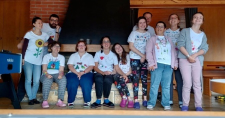 Gioia nonostante la meteo - Una gioia per poter di nuovo condividere la propria vita con gli altri che il maltempo degli scorsi giorni non ha minimamente intaccato. «Ha piovuto praticamente fino a giovedì mattina. Con il brutto tempo abbiamo dovuto inventarci alcune attività per passare le giornate insieme in maniera divertente», sottolinea Daniele. «Abbiamo decorato delle magliette (vedi foto di gruppo, ndr), abbiamo scritto più di quaranta cartoline e per la serata di giovedì abbiamo organizzato una “cena di gala”», precisano le ragazze in coro con entusiasmo.