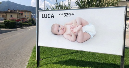 Si chiama Luca e costa 329 franchi. Da qualche settimana appare su diversi manifesti nella Svizzera italiana.