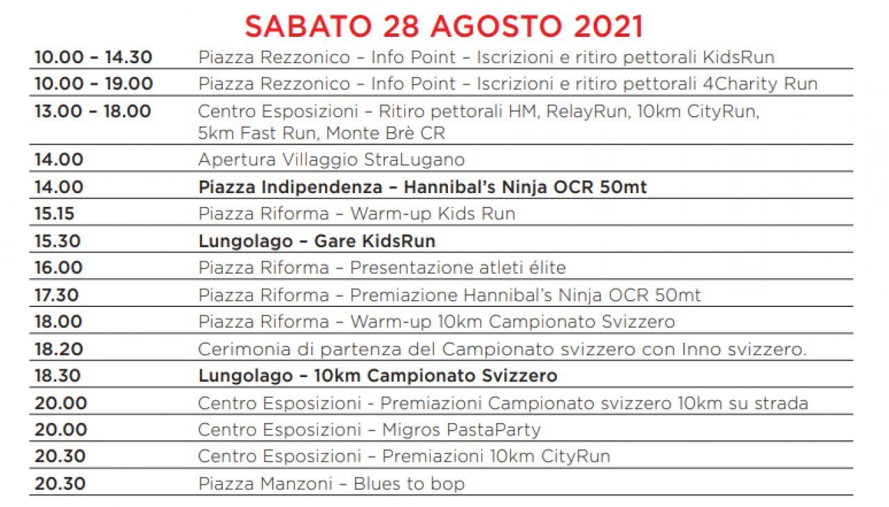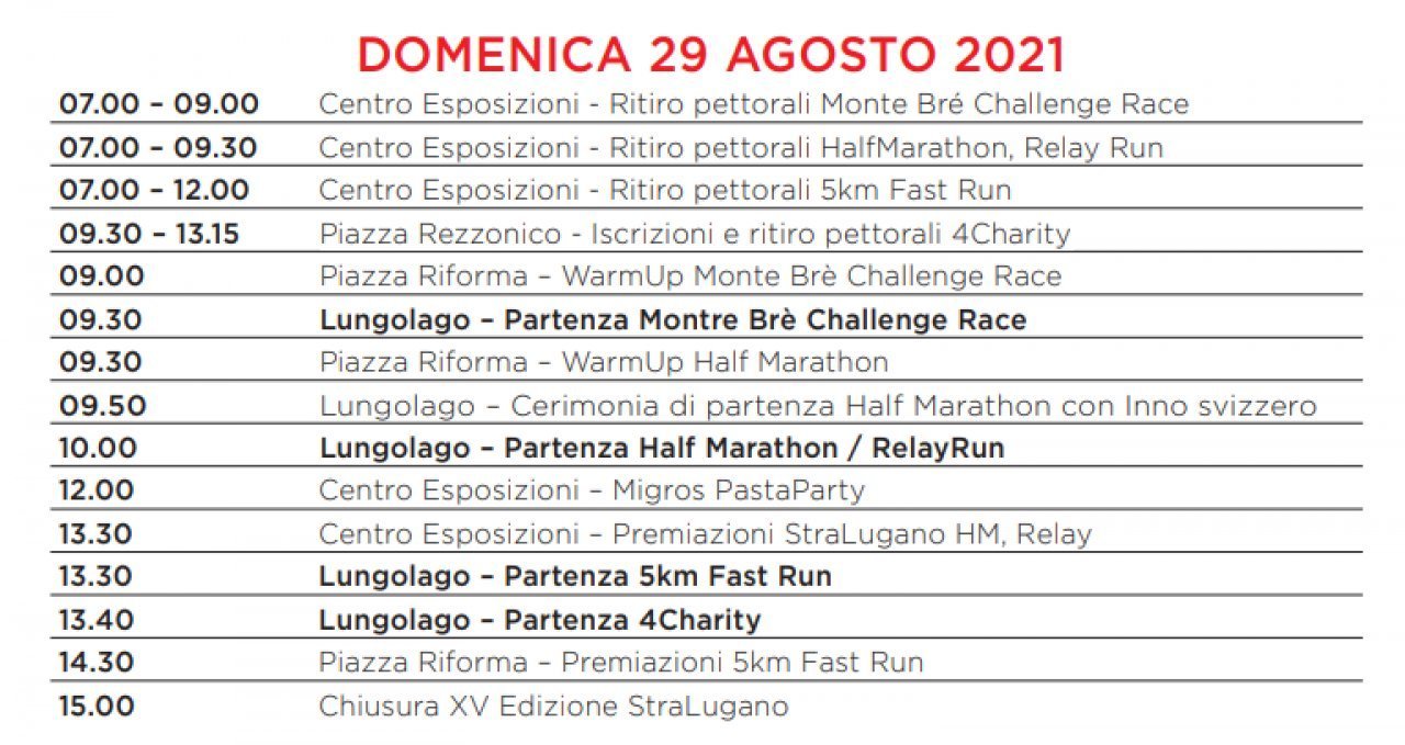 Una per tutti i gusti - Le gare saranno sette in tutto: L'Half Marathon, una mezza maratona da 21 chilometri, l'HM Relay Run, una staffetta in team da tre persone da 21 chilometri, la City Run da 10, la Fast Run da 5, la Kids Run, La Monte Brè Vertical Race da 730 metri di dislivello e la 4Charity, la cui tassa d'iscrizione andrà interamente in beneficenza. Sarà inoltre possibile raccogliere la sfida della StraCombinata, partecipando sia alla City Run del sabato che alla Vertical Race della domenica.