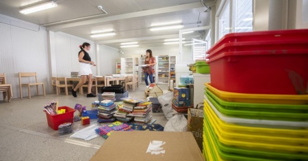 BELLINZONA - Lavori in corso nei prefabbricati situati presso le Scuole Nord a Bellinzona: i moduli si preparano infatti ad accogliere i 146 bambini iscritti alla scuola dell'infanzia Palasio a Giubiasco. Bambini che a causa del maltempo sono costretti a iniziare l'anno scolastico in “trasferta” e con qualche giorno di “ritardo”.