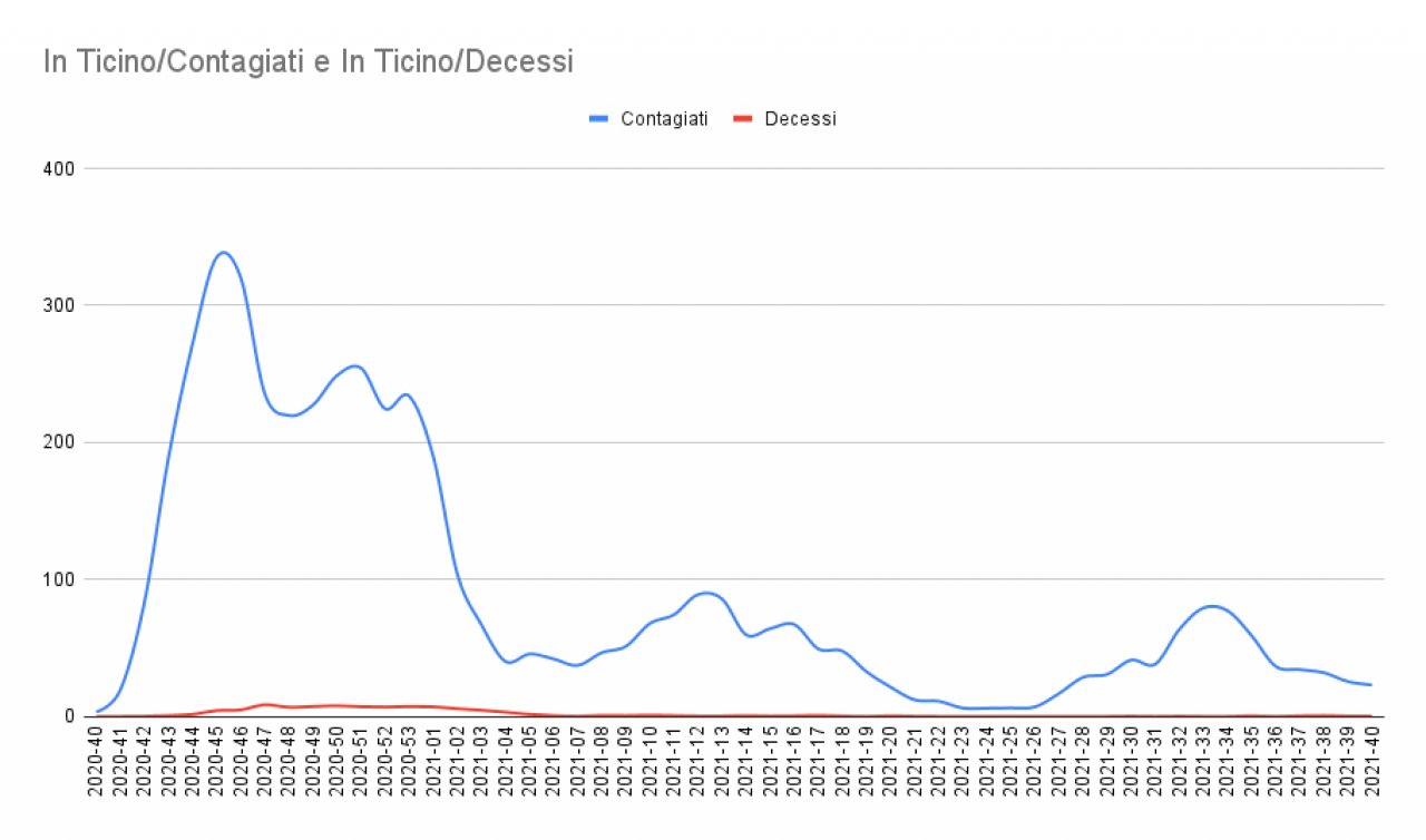 Non si registra per fortuna nessun nuovo decesso: il totale è fermo a 1 007 dall'inizio della pandemia. Nessun nuovo contagi nelle case anziani, stando al sito dell'Adicasi. Nelle scuole non si segnalano nuove quarantene di classe: al momento la misura preventiva non è in vigore in nessun istituto, si legge sul sito del Decs.
