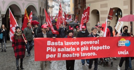 A Bellinzona si è tenuto un corteo per rivendicare aumenti salariali in tutti i settori economici.