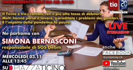 La responsabile di SOS Debiti Simona Bernasconi in diretta live su Piazza Ticino.