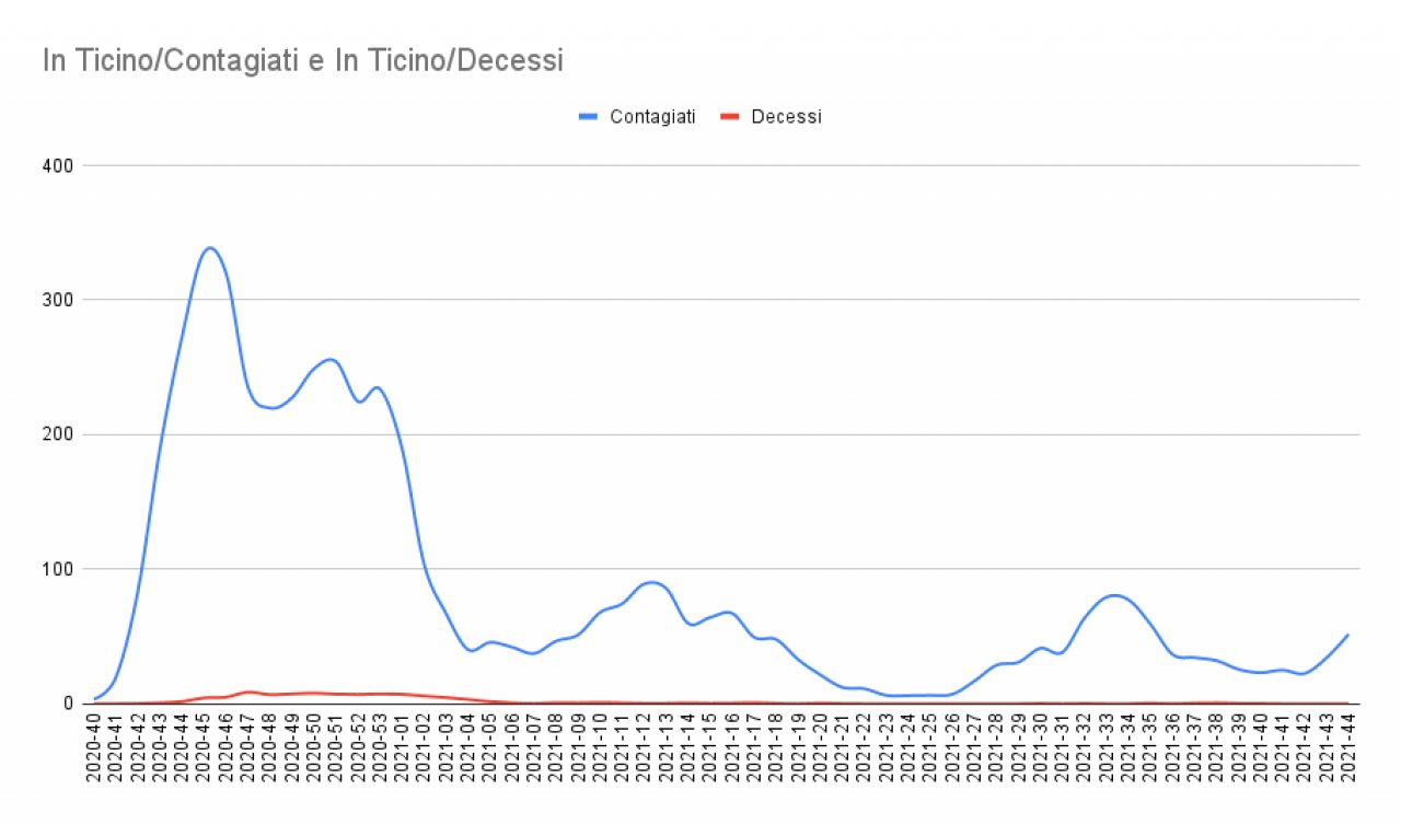 BELLINZONA - Nelle ultime 24 ore in Ticino sono stati accertati 47 nuovi contagi da coronavirus. Un dato in linea con gli ultimi giorni (ieri erano 65, mercoledì 36) e in leggero aumento rispetto alle scorse settimane, quando in media venivano registrati tra i 20 e i 35 casi giornalieri. Prosegue per contro il periodo senza morti legati a un decorso infelice della malattia: l'ultimo decesso risale ancora allo scorso 6 ottobre.