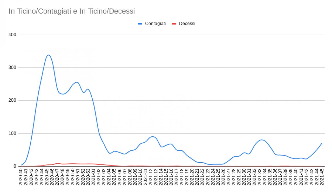 Sono 57 i nuovi contagi in Ticino