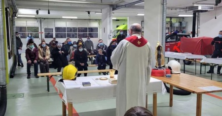 MELIDE - C'erano pompieri, ex pompieri, famiglie e le autorità comunali ieri sera per la Santa Messa che ha avuto luogo presso la Caserma del Corpo Pompieri di Melide, per le celebrazioni di Santa Barbara, patrona dei pompieri.
