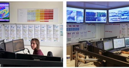 I due trentenni si alternano con i colleghi nella sorveglianza meteorologica e nell’emissione di allerte e previsioni.