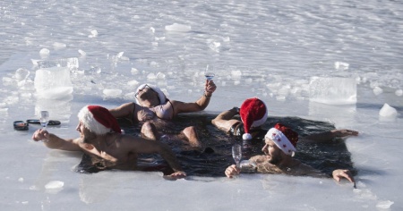 Buttarsi nelle acque ghiacciate è una tradizione che valica i confini. Già questa mattina una decina di persone si è tuffata nel lago Lemano a Ginevra e anche dalla Germania arrivano foto di impavidi festaioli che per celebrare l'anno fanno un tuffo. L'evento che si è svolto oggi a San Bernardino è lo Sveglione.