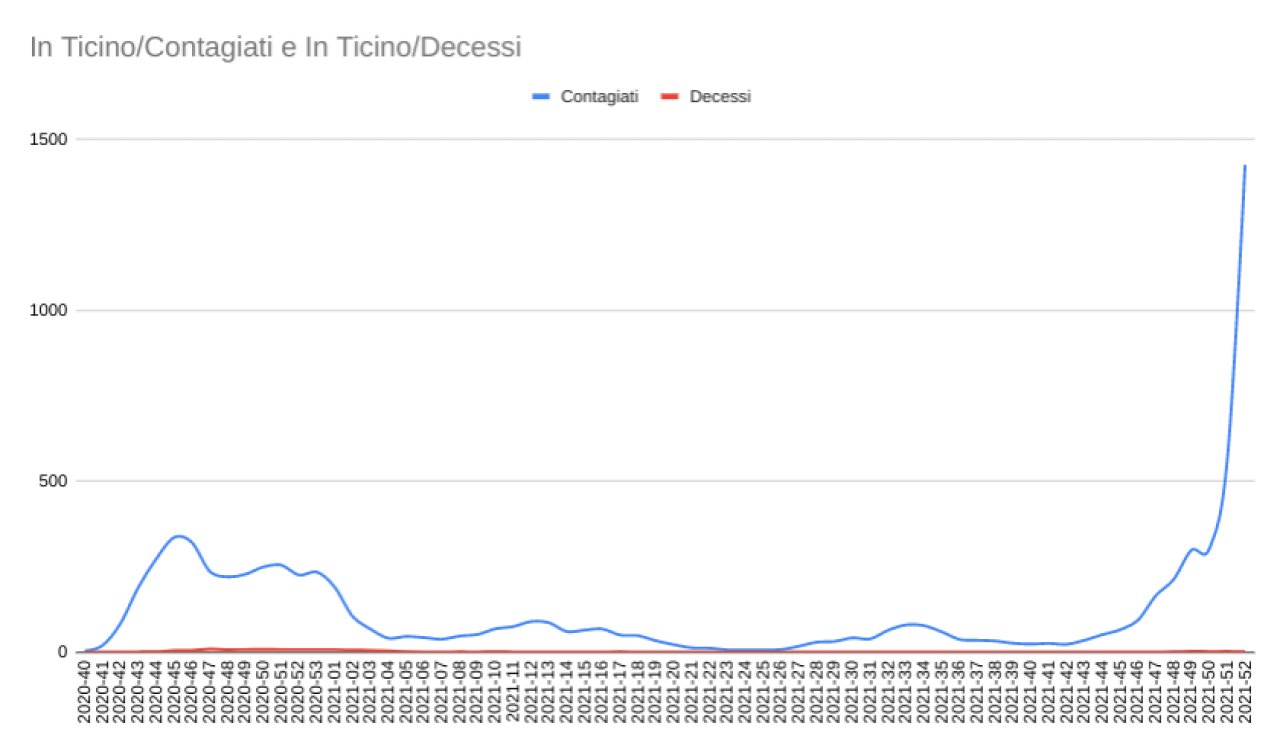 Istituti scolastici - Essendo gli istituti scolastici ticinesi chiusi per le vacanze invernali, al momento nessuna delle 416 sezioni di scuola dell'infanzia, 816 di scuola elementare, 624 di scuola media, 249 di scuola media superiore e 910 delle scuole professionali cantonali si trova in quarantena.