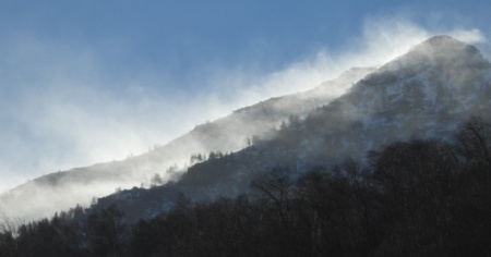Forte vento, bufera di neve nell'alta val Riviera