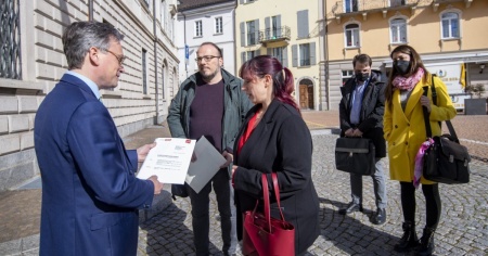 Una delegazione di lavoratori accompagnata da rappresentanti di Unia e Ocst ha portato l'istanza a Bellinzona.