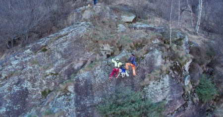 Il proprietario chiama quindi la centrale di polizia che lo collega al picchetto della Protezione animali di Bellinzona. Subito vengono allarmati i rocciatori del gruppo tecnico della Spab che, in meno di un’ora, sono sul posto pronti a recuperare Sami mediante una speciale imbragatura.