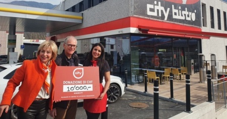 La consegna dell’assegno simbolico da parte della Presidente di City Carburoil, Lorenza Cattaneo Colombo, è avvenuta a Sementina, presso la nuova stazione di sevizio City ENI, in via Pobbia 2. A ritirarlo è stato Patrick Berger, presidente dell’associazione.