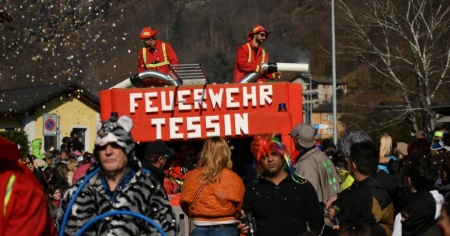 BIASCA - "Attenzione, arrivano i pompieri della località tedesca di Tessin per spegnere l'incendio nel Gambarogno". Questo è soltanto uno dei momenti che hanno caratterizzato l'odierno corteo di carnevale nel regno di Re Naregna, a Bias...