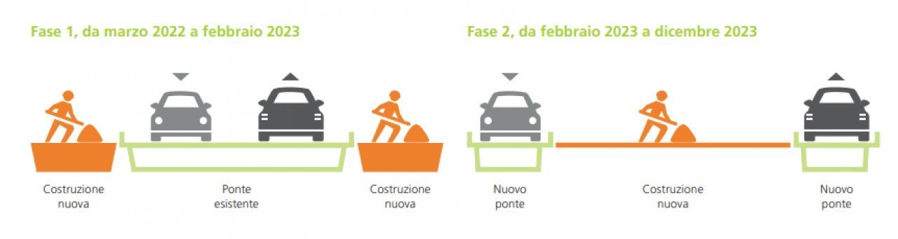 Ecco cosa aspettarsi - Durante le fasi di cantiere, indica il depliant informativo dell'USTRA, il traffico veicolare sarà gestito con una corsia per direzione, al fine di garantire un transito veicolare fluido. Nel corso della realizzazione del nuovo ponte di via Tatti, il traffico verrà dapprima disposto su due corsie nella parte centrale del ponte. Una volta realizzate le due nuove parti esterne del ponte, il traffico verrà spostato sui nuovi manufatti. In seguito si procederà alla demolizione e ricostruzione della parte centrale, così da ottenere un’unica struttura omogenea e con le larghezze necessarie. Durante il cantiere, il traffico veicolare sul ponte di via Tatti dovrà subire alcune interruzioni notturne e brevi interruzioni diurne fuori dagli orari di punta.