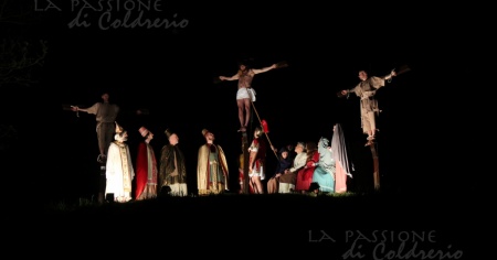 Dal complotto alla crocifissione - Il momento più suggestivo e coinvolgente è però la rappresentazione degli eventi della Passione, con le varie scene drammatiche, sul colle Ciossetto. Si inizia con il complotto ordito dai capi del sinedrio nei confronti di Gesù e con la sua cattura nell'orto dei Getsemani, per poi proseguire con il processo religioso davanti ai sommi sacerdoti (con la scena del rinnegamento di Pietro e quella del tradimento di Giuda). Seguono il processo religioso davanti a Ponzio Pilato, la fustigazione e la condanna a morte, preludio dell'ascesa al Calvario e della crocifissione: l'apice della rappresentazione di Coldrerio è un unicum nell’ambito degli eventi pasquali ticinesi.
