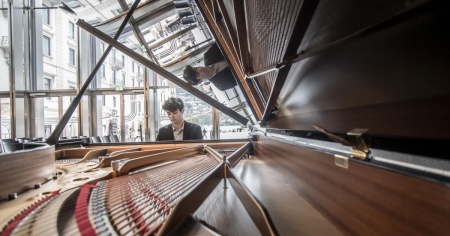 LUGANO - Le note dei brani di Schumann, Bartók, Debussy, Prokofiev hanno invaso, questa mattina, la hall del centro culturale LAC di Lugano. Li ha proposti il giovane (è nato nel 2001 a Treviso) pianista Elia Cecino.
