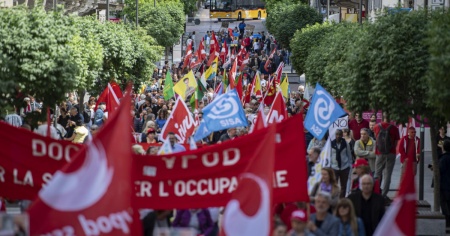 Un migliaio di persone ha sfilato tra le vie di Bellinzona per una festa dei lavoratori un po' diversa.