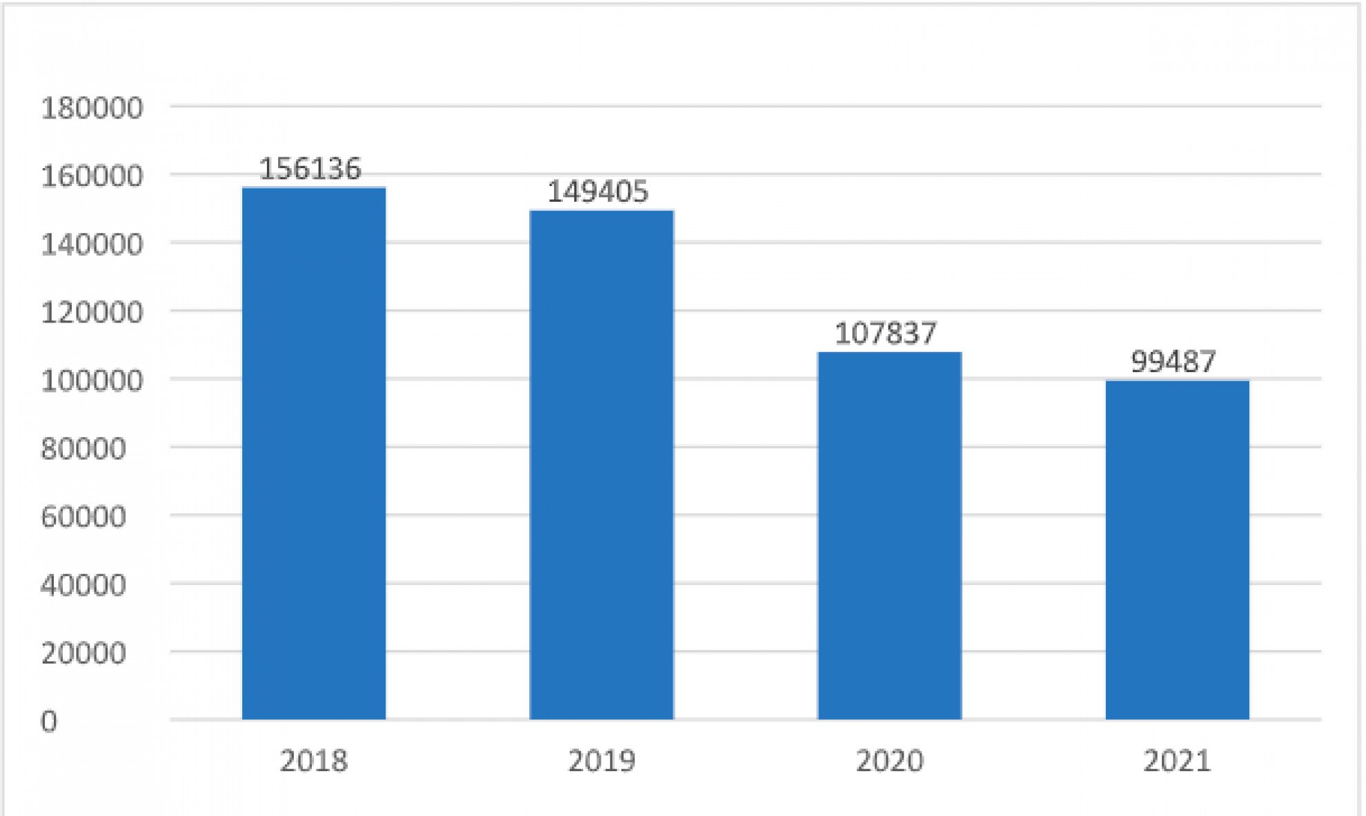 Pernottamenti di turisti italiani in Ticino (2018-2021).