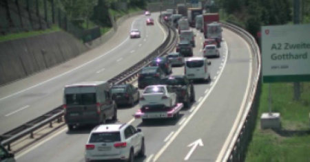 #A2 - Lucerna -> S. Gottardo - tra Erstfeld e Göschenen traffico bloccato per 9 km, traffico congestionato, ritardi fino a 1 ora e 40 minuti