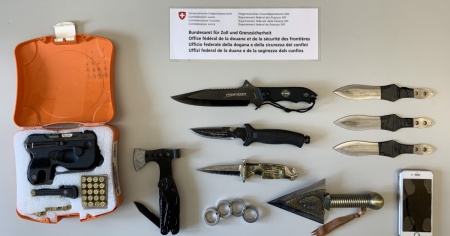 Nel primo caso, gli agenti hanno fermato un uomo che nascondeva un piccolo arsenale nel baule dell’auto: tra gli altri oggetti, sono stati trovati una pistola, un’ascia nonché pugnali e un dispositivo di elettroshock camuffato da cellulare. L’uomo, un 56enne di nazionalità italiana, è stato fermato la mattina del 25 maggio in ingresso in Svizzera al valico di Castasegna. La persona e le armi sono state consegnate alla Polizia cantonale dei Grigioni.