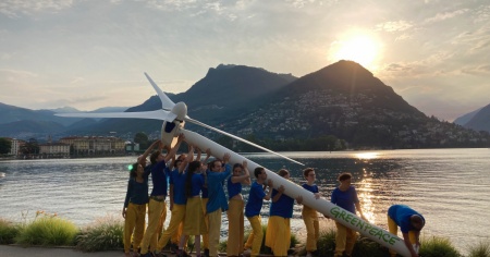 LUGANO - Gli attivisti di Greenpeace hanno allestito una turbina eolica, questa mattina a Lugano, non lontano dal sito della Ukraine Recovery Conference.