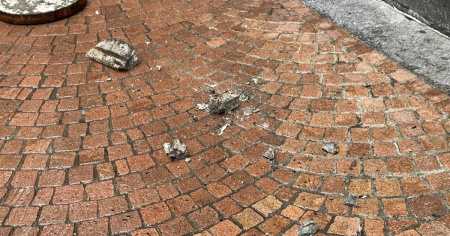 Parte di un balcone si è staccata, finendo in strada, stamattina in Piazza Cioccaro.