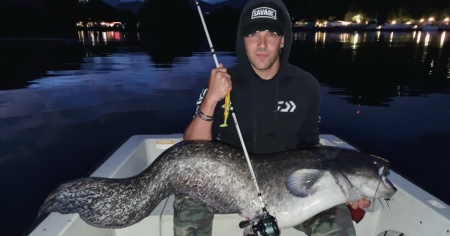 Un pesce siluro gigantesco pescato nel Ceresio