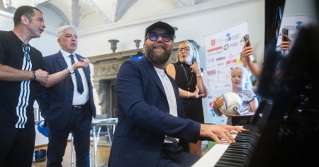 Brividi al pianoforte in attesa della Partita del Cuore: il video