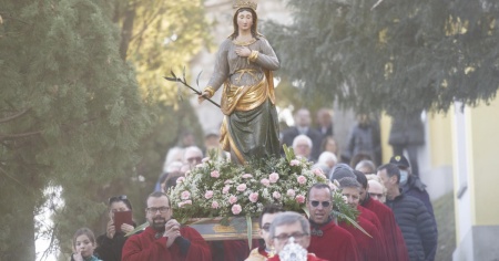 A seguito del banco del dolce e della Santa Messa di ieri pomeriggio, quest'oggi ha avuto luogo - al termine della funzione delle 14.30 - la processione lungo le strade del paese, con il trasporto della statua e del Santissimo Sacramento.