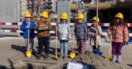 Durante la cerimonia simbolica una delegazione di bambini e di docenti della scuola ai Saleggi ha potuto visitare il cantiere e presentare la “scatola della memoria”, contenente un ricordo o un pensiero inerente la costruzione delle due nuove sezioni.