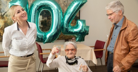La decana ha mantenuto uno spirito arzillo e allegro, tanto che alla domanda su cosa preferisse bere per festeggiare le sue 104 primavere ha risposto, sfoggiando un gran sorriso: «Un prosecchino».