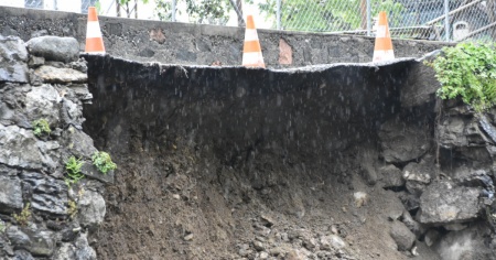 MENDRISIO - Cedimento di un muro, situato al di sotto del campo stradale, in via Corta a Salorino, attorno alle 9:30.