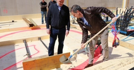 LOSONE - Dopo mesi di preparativi, le fondazioni sono state ultimate. Nel vasto scavo che si apre di fronte al vecchio Palazzo comunale, stanno iniziando i lavori di edificazione della nuova sede del Comune di Losone. Oggi, il Municipio ha, infatti, preso parte alla posa della simbolica prima pietra della nuova casa comunale. «Adesso possiamo davvero guardare avanti e vedere la realizzazione di un nuovo centro cittadino, di una piazza, il cui perno sarà la nuova sede civica di Losone», ha dichiarato il sindaco Ivan Catarin di fronte ai rappresentanti del patriziato e della parrocchia, degli studi di architettura e ingegneria e dell’impresa di costruzione.