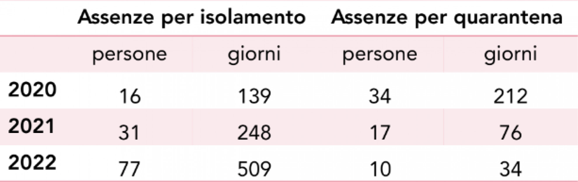 La coda della pandemia - Il Covid-19 ha lasciato il segno anche sull'organico della polizia cittadina. Dopo l’attenzione posta durante la fase acuta della pandemia, il Comando ha dovuto fare i conti con assenze straordinarie sempre più consistenti dovute agli effetti del virus e a una progressiva «insofferenza» nel convivere con lo stesso. Durante il 2022 infatti sono stati contabilizzati ben 509 giorni d'assenza per isolamento e 34 per quarantena che hanno coinvolto in totale 87 persone.