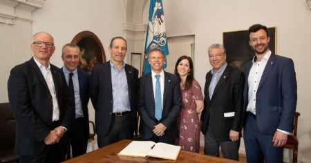 LOCARNO - Il Libro d’oro della Città si è impreziosito di un’ulteriore firma. Quella dell’Ambasciatore europeo a Berna, Petros Mavromichalis, ricevuto dall’Esecutivo – per l’occasione erano presenti il sindaco Alain Scherrer, il vicesindaco Giuseppe Cotti e la municipale Nancy Lunghi – cogliendo l’opportunità offerta dal congresso organizzato dai Giovani del Centro proprio a Locarno e che vedeva appunto tra gli invitati l’Ambasciatore Mavromichalis.
