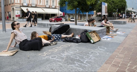 I giovani manifestanti presenti hanno messo i passanti di fronte a un bivio: «Quale direzione vogliamo prendere»? Da una parte c'è il sì alla Legge clima che comporta una vita serena, normale e sostenibile. Dall'altra, un no aprirebbe le porte a uno scenario di temperature sempre più elevate e di sofferenza, con il Piano di Magadino che cambierebbe volto e si trasformerebbe in un deserto.