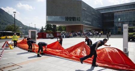 Il dispositivo di protezione è «flessibile, di facile e rapido impiego; si compone di un container scarrabile con al suo interno sbarramenti per una lunghezza totale di 400 metri e altro materiale moderno, in grado di offrire un’adeguata protezione di luoghi particolarmente sensibili alla minaccia di possibili piene di torrenti, fiumi e laghi». È stata fatta una dimostrazione a cura dei Pompieri nel quadro di un’esercitazione. «Questo fondamentale strumento di lavoro, che va ad aggiungersi e ad arricchire il materiale in dotazione, sarà a nostra disposizione per un impiego efficace a tutela del Luganese», ha spiegato il tenente colonnello Federico Sala, comandante del Corpo civici pompieri di Lugano.