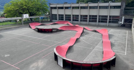 CLARO - Cunette, dossi e curve paraboliche, Claro si regala una pista Pumptrack temporanea. Il percorso, installato presso le scuole elementari della frazione di Bellinzona, è adatto a tutti, principianti ed esperti, e sarà disponibile fino al 4 di settembre.