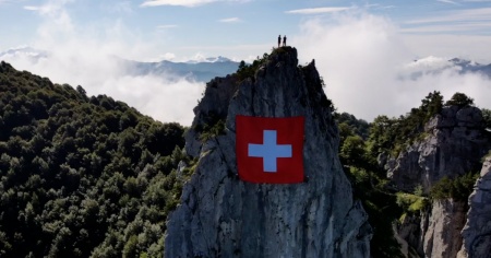 Una decina di persone ha posizionato sulla parete rocciosa che sovrasta il Luganese un’imponente bandiera rossocrociata di 10 x 10 metri. Il vessillo è visibile a grande distanza ed è inserito nella magnifica cornice dei Denti della Vecchia.